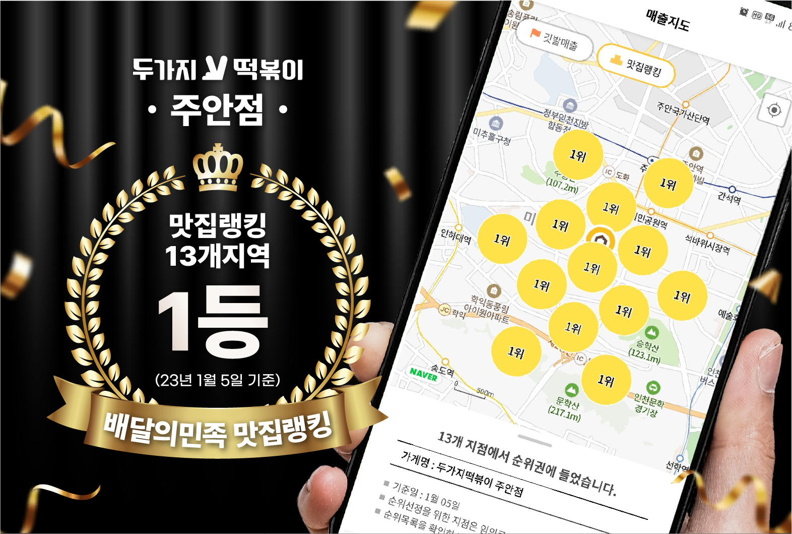 두떡 주안점이 (23년 1월 5일 기준)주안동, 용현1.4동, 학익동, 도화동, 문학동, 관교동전 지역..