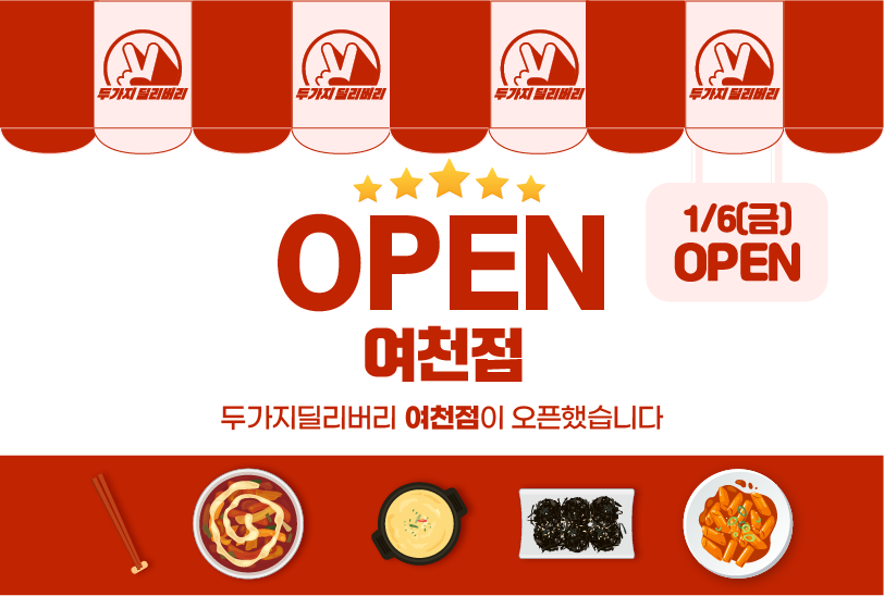 두가지딜리버리가 여수시 신기동에 오픈하였습니다!여천점 점주님께서는 두가지딜리버리(두가지떡볶이, 밥앤동,..