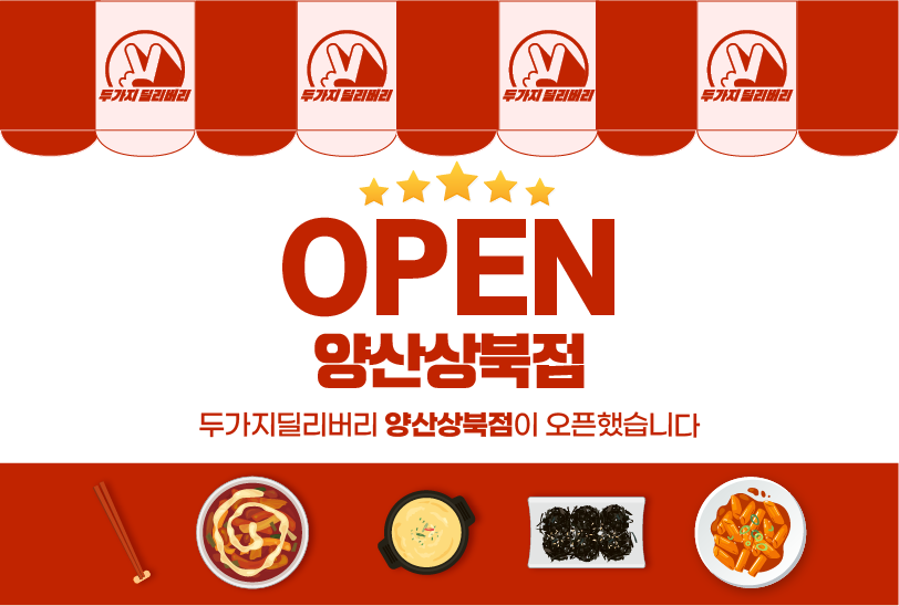 두가지딜리버리가 경남 양산시에 오픈하였습니다!양산상북점 점주님께서는 두가지딜리버리(두가지떡볶이, 밥앤동..