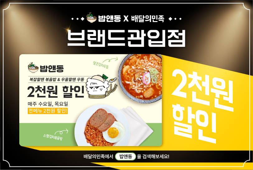 밥앤동이 배달의민족 브랜드관에 입점하였습니다!이제는 배달의민족 브랜드관 카테고리에 노출되고,쿠폰 행사도..