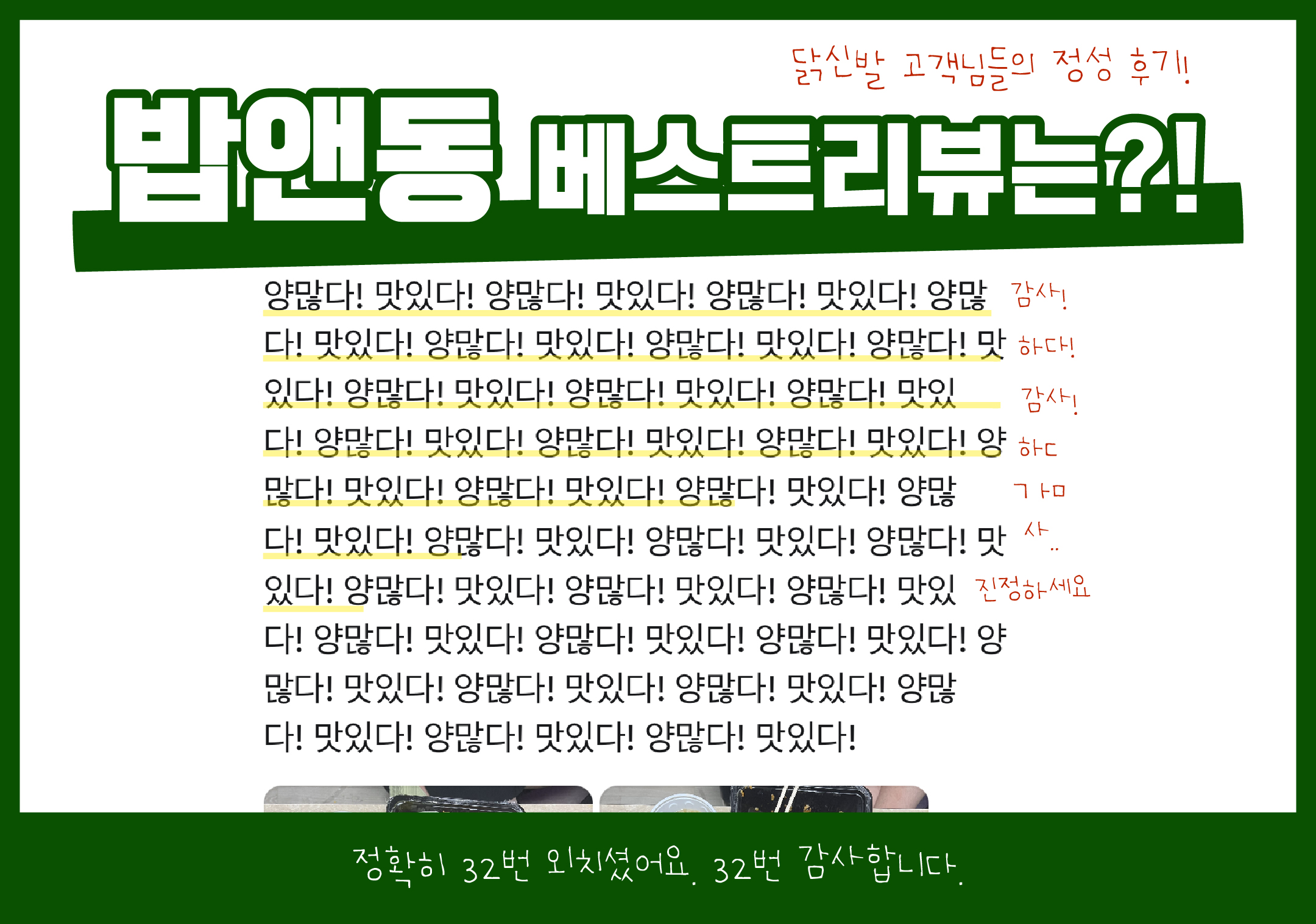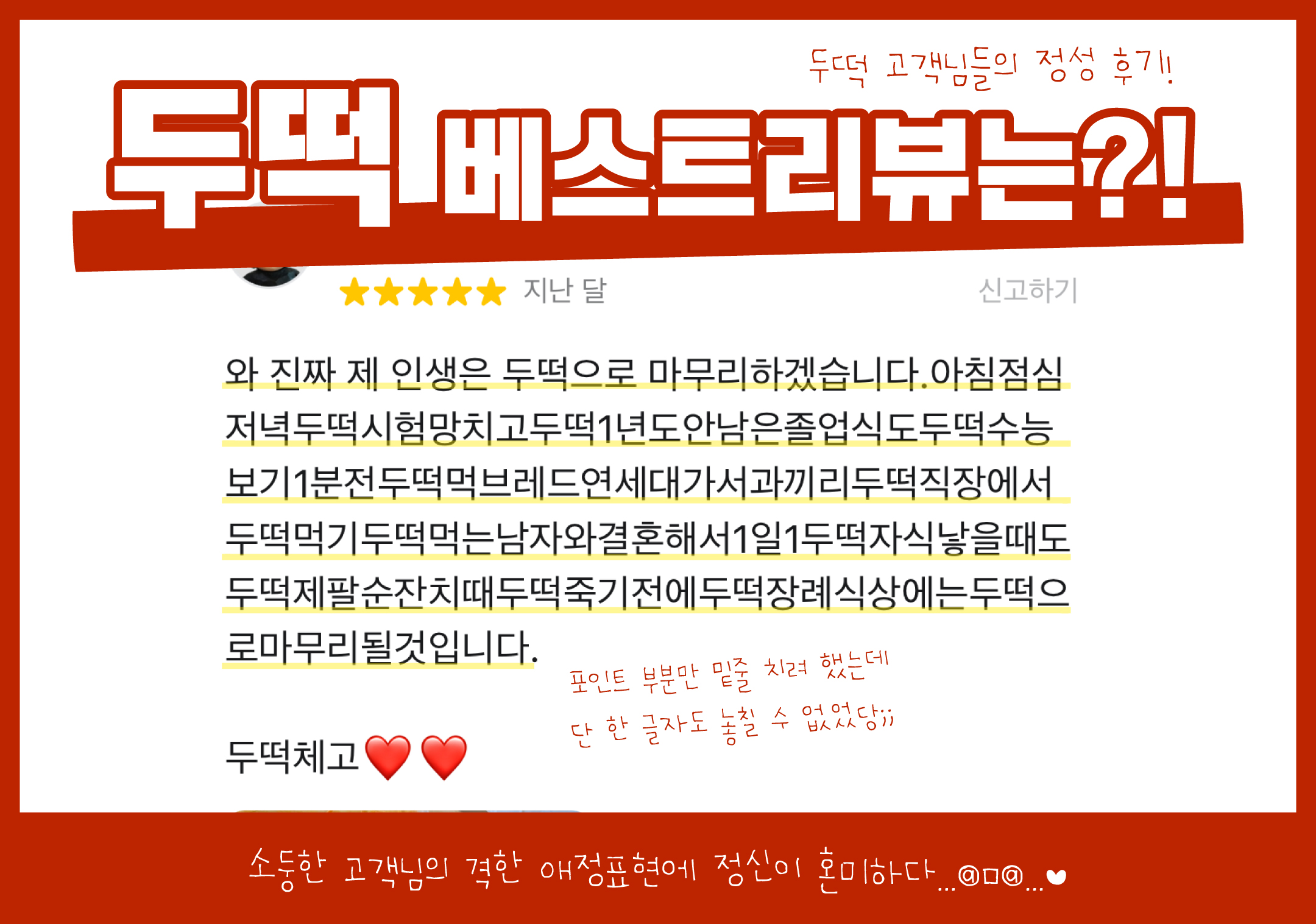 밥앤동 베스트 리뷰는?!두떡에 이어서 이번엔 밥앤동 고객님들의리뷰를 선정해 보았습니다. 재밌게 봐주세요..