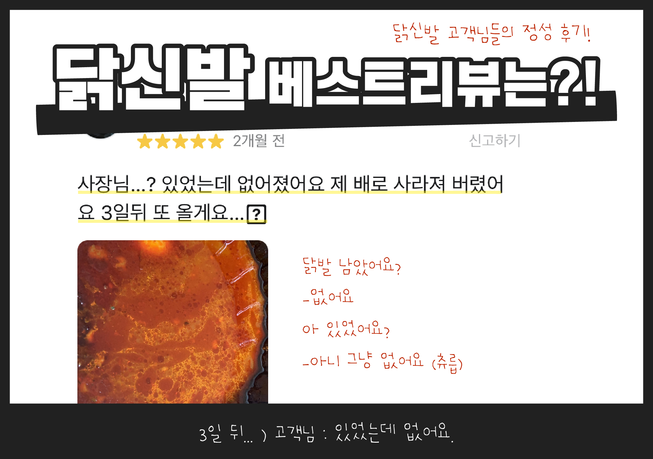 닭신발 베스트 리뷰는?!두떡에 이어서 이번엔 닭신발 고객님들의리뷰를 선정해 보았습니다. 재밌게 봐주세요..
