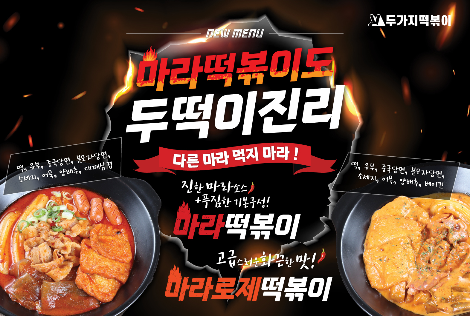 안녕하세요 '옛날떡볶이' + '요즘떡볶이'두 가지다 맛있는 두떡! 입니다.마라떡볶이도 두떡이 진리!중독..