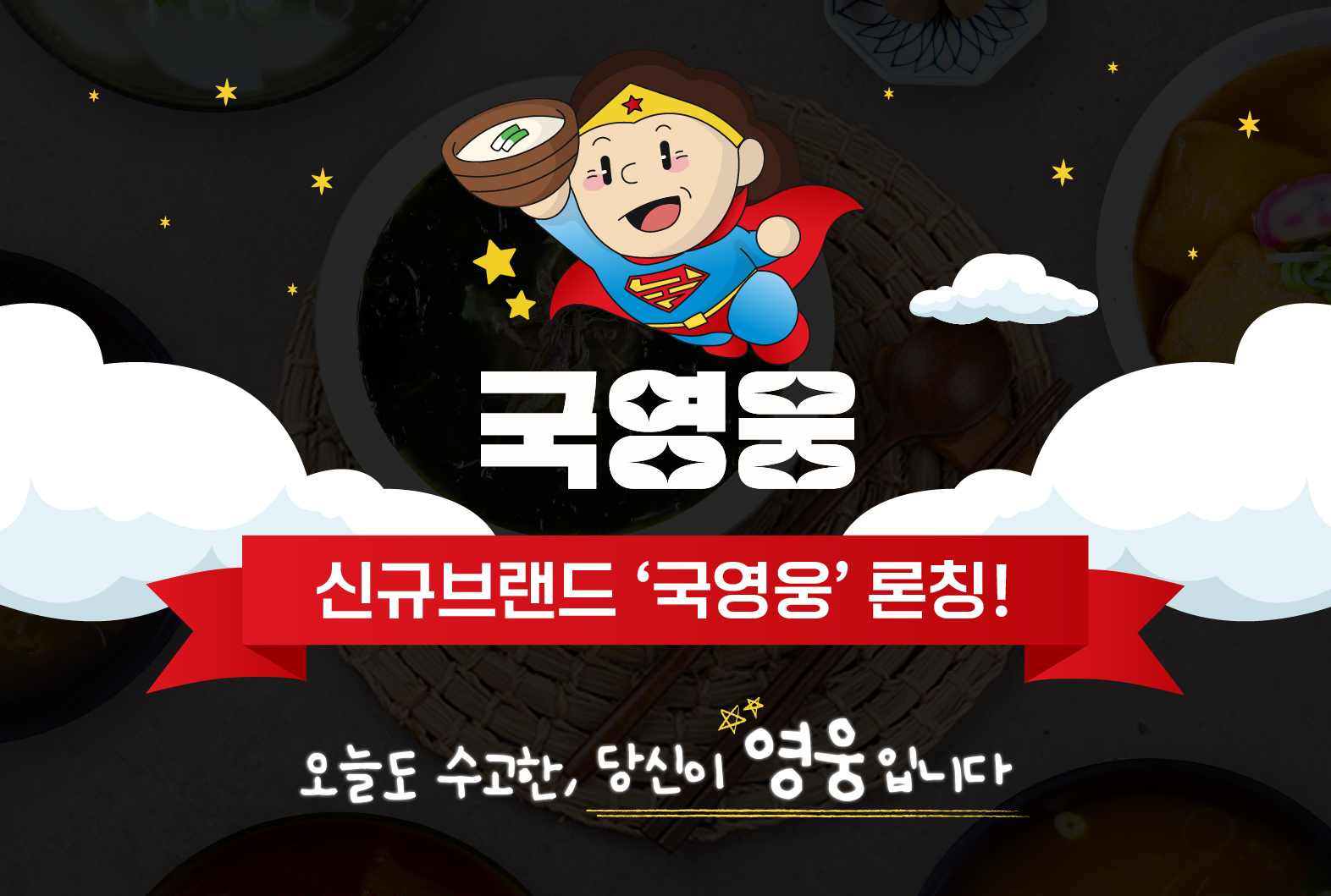 두가지 컴퍼니의 신규 브랜드'국영웅'을 시작하였습니다!국영웅 로고 - 어머니가 국을 들고날아오르는 모습..