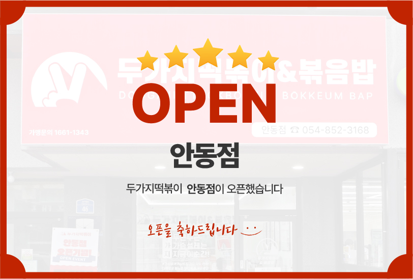 두가지떡볶이가 구미시 옥계동에 오픈하였습니다. 구미옥계점 점주님께서는 기존 족발집을운영하시다가 밥앤동을..