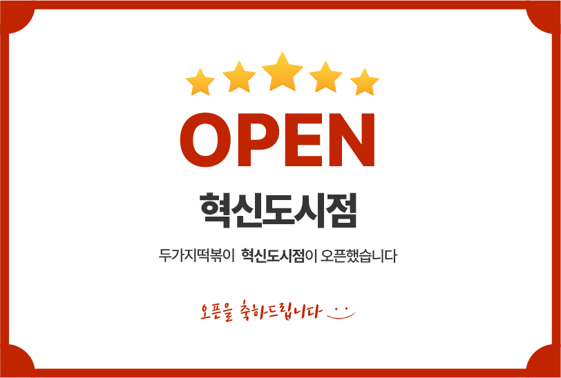 두가지떡볶이가 김천시 율곡동에 오픈하였습니다. 혁신도시점 점주님께서는 밥앤동을먼저 운영하시다가 마음에 ..