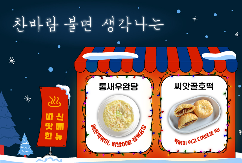 두가지떡볶이에서 겨울맞이따뜻한 신메뉴를 출시했습니다!찬바람 불때.. 통새우 완탕 & 씨앗 꿀호떡..