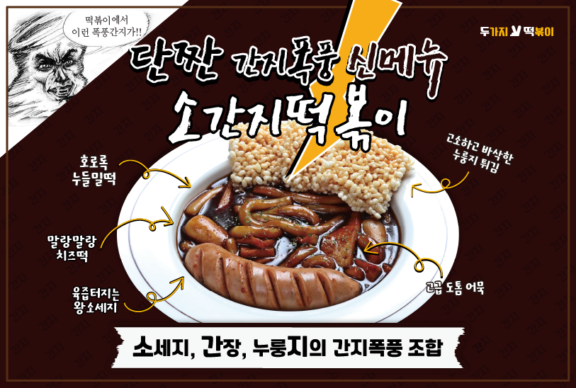두떡 소간지 떡볶이 신메뉴 출시두가지떡볶이에서 2022년 맞이신메뉴가 출시되었습니다!소세지간장누룽지튀김..