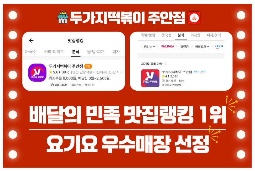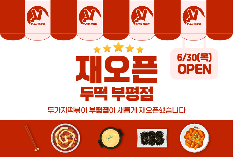 두가지떡볶이 부평점이새롭게 리뉴얼되어 재오픈 하였습니다!평점 점주님께서는 '두가지딜리버리' 배달 전문점..