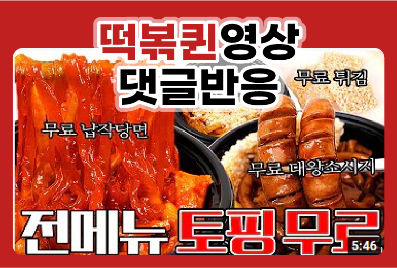 오늘은 저번 떡볶퀸이 소개한두가지떡볶이 영상 댓글 반응을 알아보려 합니다!돈 내고 토핑 추가하지 않아도..