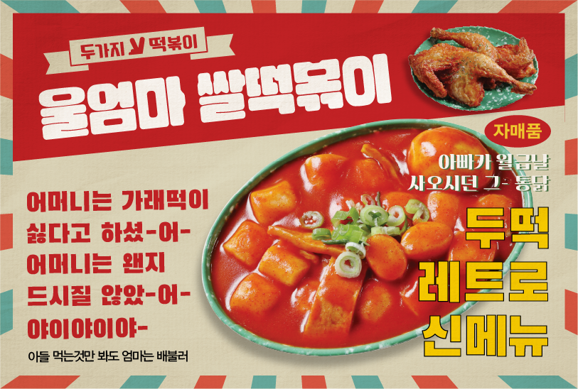 두떡 울엄마 쌀떡볶이 신메뉴 출시두가지떡볶이에서추억의 신메뉴가 출시되었습니다!두떡에 쌀떡볶이 혹은꾸덕꾸..